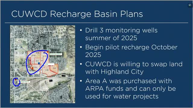Central Utah Water plans pilot recharge tests on former gravel property; city and agency discuss monitoring wells and future land swaps