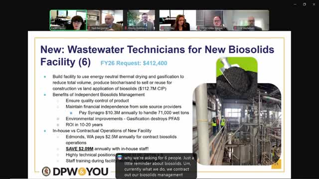 Anne Arundel DPW outlines plan for in‑house biosolids thermal drying/gasification plant; 6 staff requested