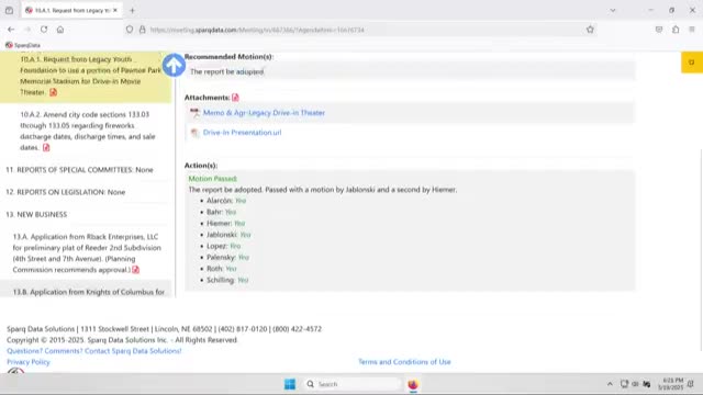 Council approves Legacy Youth Foundation drive‑in at Pawnee Park parking lot