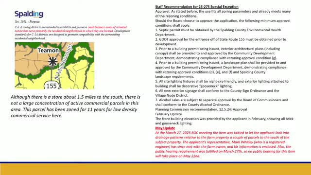 Spalding County splits on small‑lot agricultural rezonings; manufactured‑home exception receives no action
