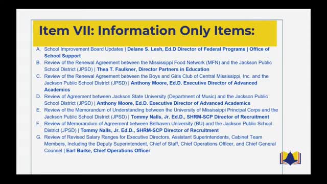 Board reviews multiple MOUs: food assistance, afterschool and university partnerships