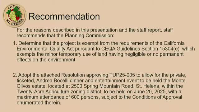 Commission clears Andrea Bocelli concert weekend at Charles Krug; staff conditions require traffic and public-safety coordination