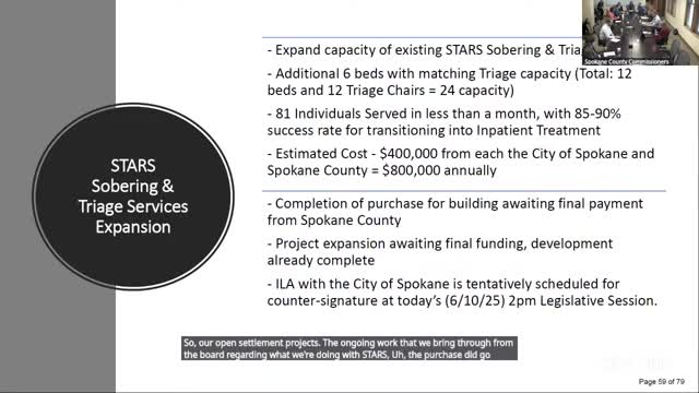 County outlines plan to expand STARS sobering capacity; seeks opioid ILA funding agreement with city