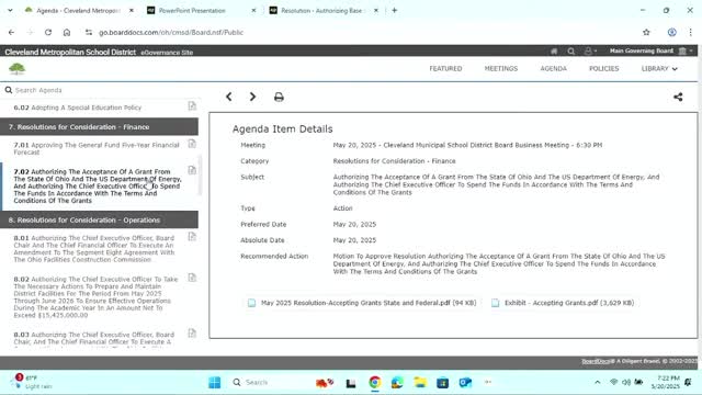 Cleveland school board adopts 5-year financial forecast, accepts state and DOE grant