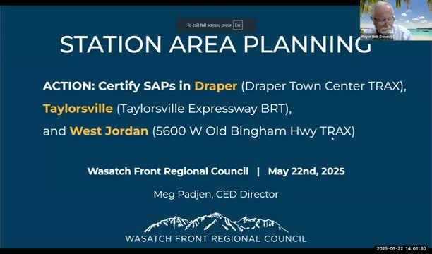Wasatch Front Regional Council certifies station‑area plans for Draper, Taylorsville and West Jordan
