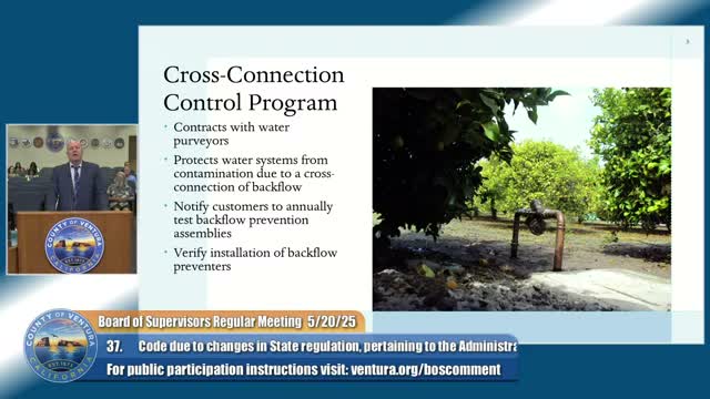 Ventura County Board repeals county-run backflow/cross-connection program, returns duties to water purveyors