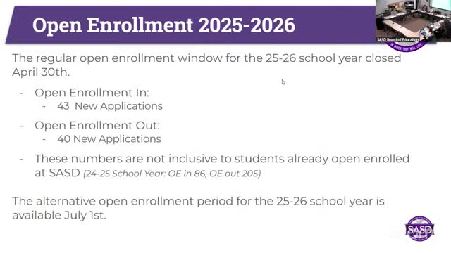 Board hears open‑enrollment numbers and annual review of meal, facility and pool fees