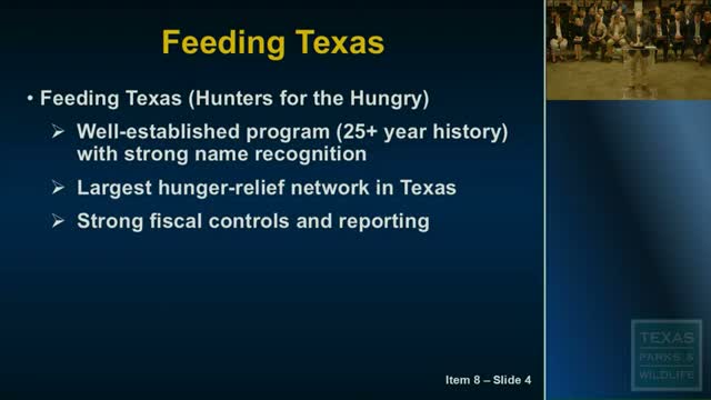 TPWD staff recommends continuing Feeding Texas as designated nonprofit for venison donations