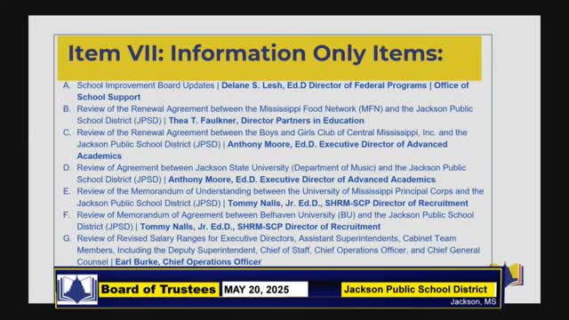Jackson Public Schools reviews community partnerships and program agreements for 2025–26