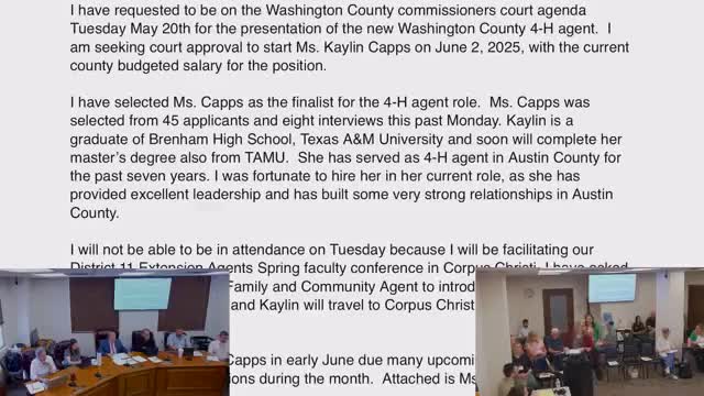 Court approves Caitlin Capps as Washington County 4‑H youth development agent, authorizes judge to sign after HR review