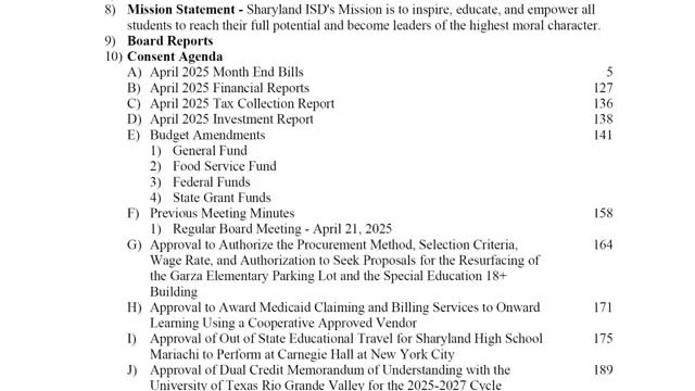 Sharyland ISD board approves consent agenda, personnel report, tax hearing date and waivers; reorganizes officers