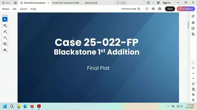Commission recommends approval of Blackstone phase 1 final plat; floodplain and lift station noted