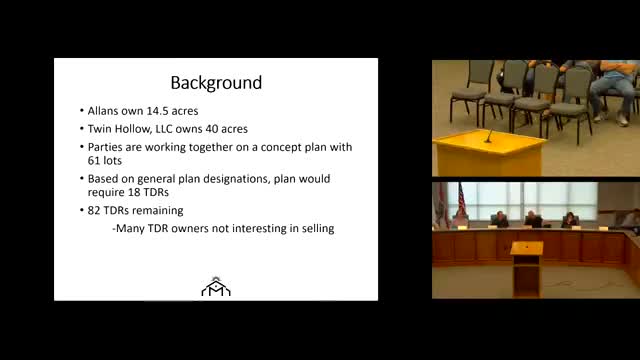 Council, developers discuss 61‑lot concept, transferable‑development‑rights program; no decision