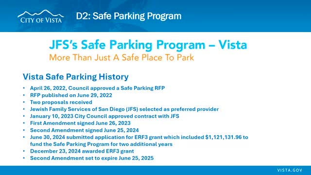 Committee recommends continuing Vista safe-parking program with Jewish Family Service under ERF3 funds
