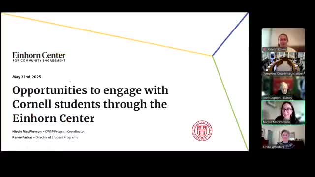 Cornell Einhorn Center outlines programs to connect students with Tompkins County governments and nonprofits