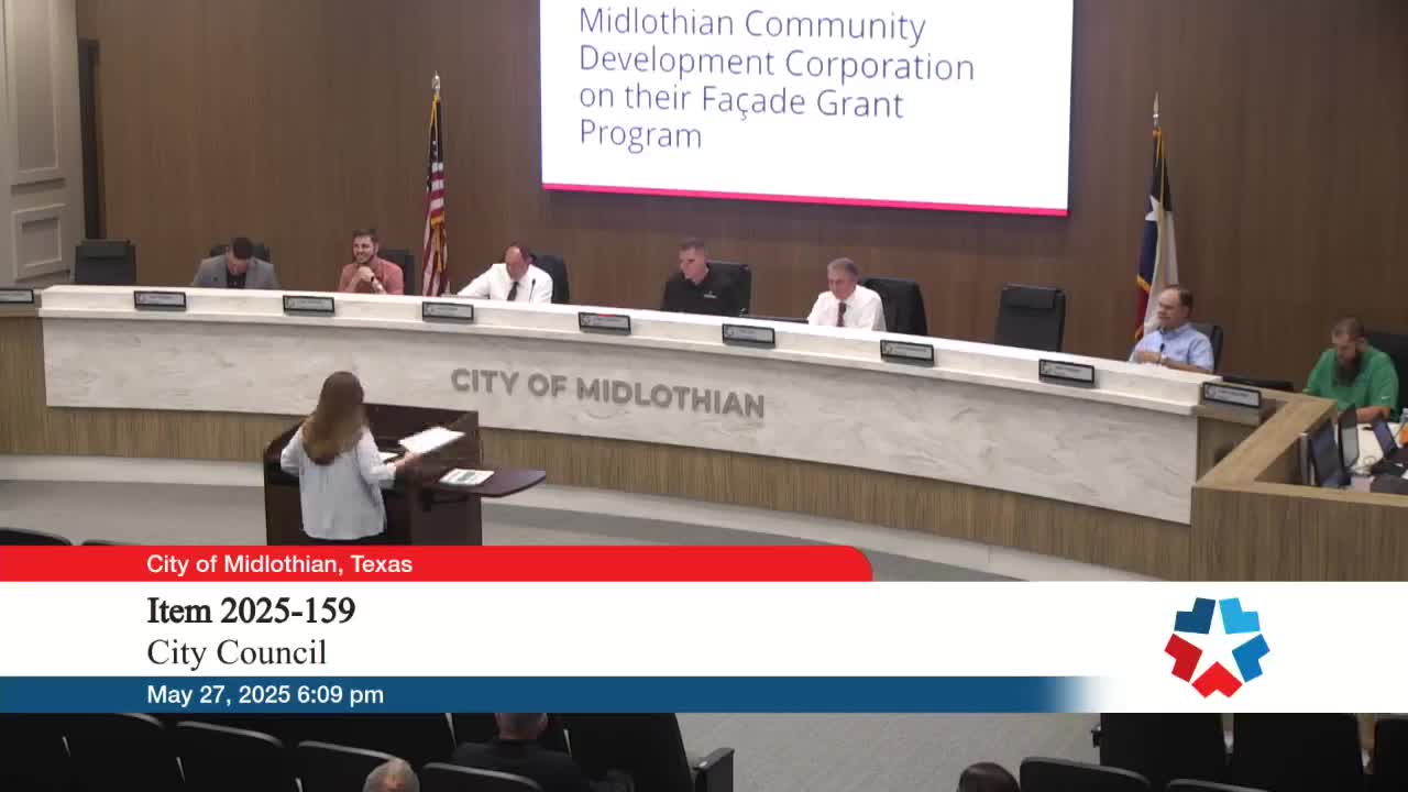 Midlothian CDC presents downtown facade‑improvement pilot: 50/50 grants up to $25,000 per project