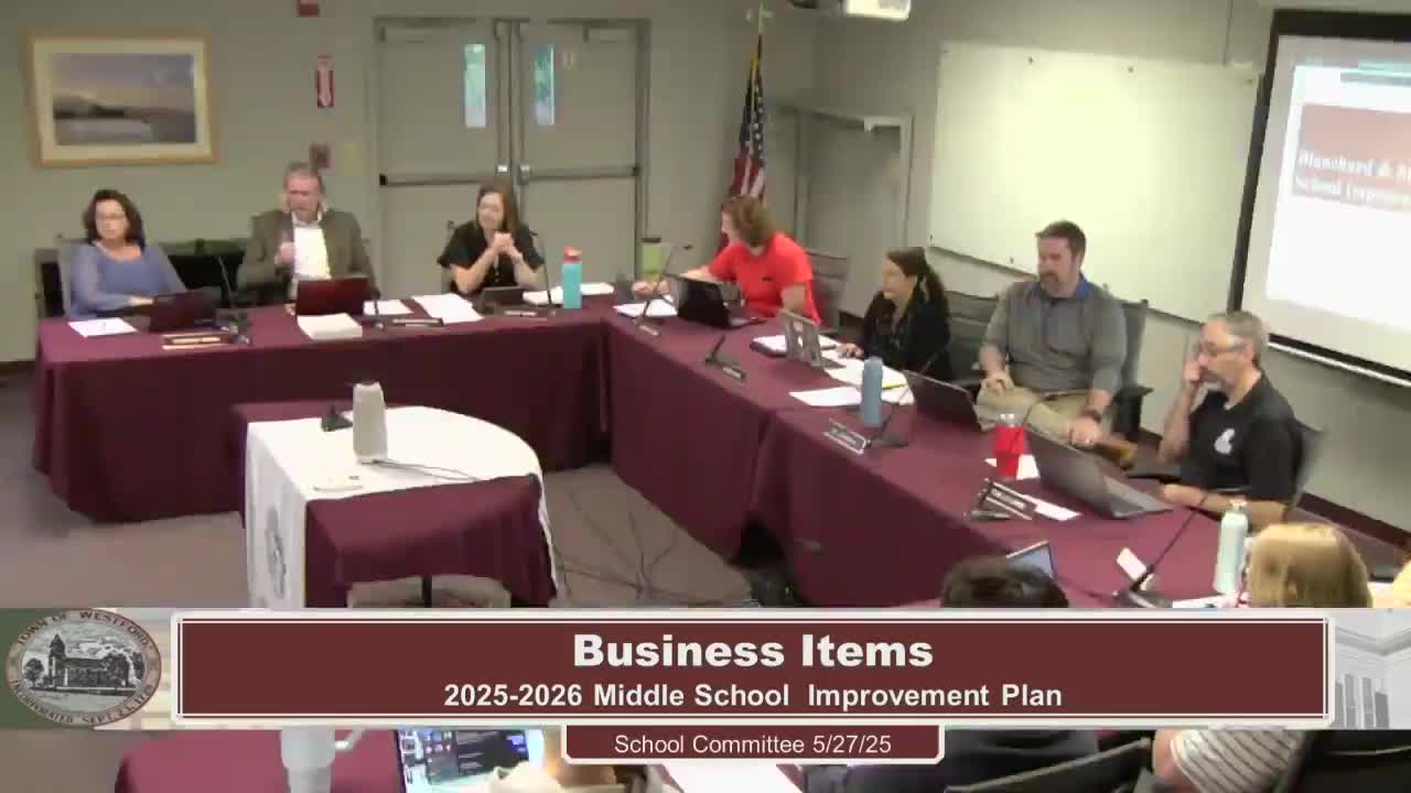 School committee approves Blanchard and Stony Brook middle‑school improvement plans and middle‑school handbook