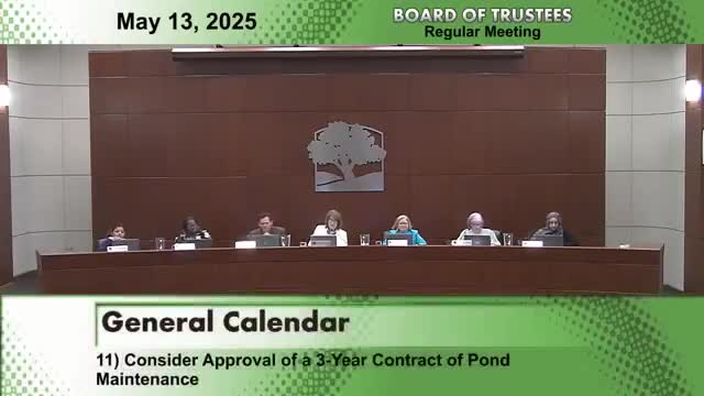 Board approves three‑year pond maintenance contract and purchase of six BioPods to reduce algae at Heritage Park and Pheasant Run