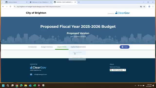 Brighton reviews 2025-26 budget proposal; council weighs capital reserves, revenue from DTN and DDA obligations