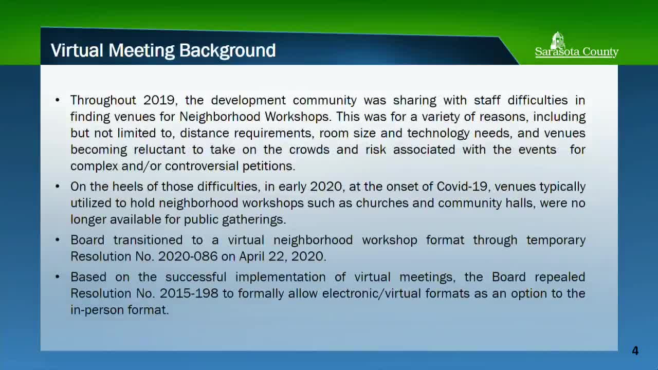 Sarasota commissioners pause plan to mandate in-person neighborhood workshops; ask staff to survey churches and venues