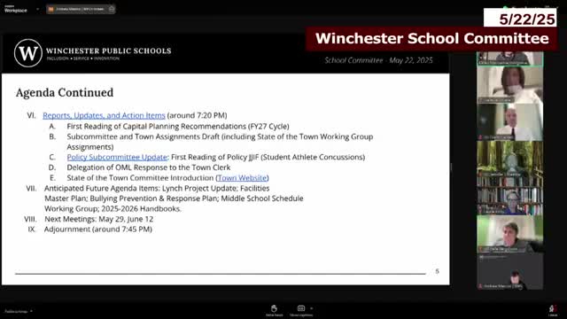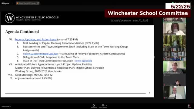 Winchester committee adopts revised student‑athlete concussion procedure, waiving second reading