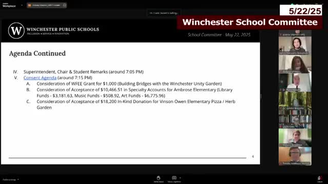 Winchester School Committee reviews draft capital priorities; town requests recommendations by mid‑June