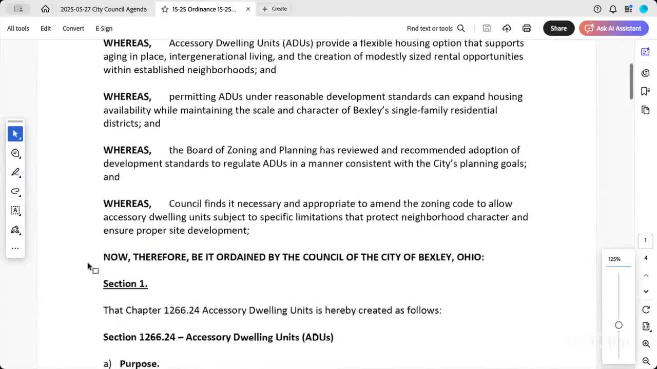 Council hears first reading of ordinance to allow one-bedroom accessory dwelling units under conditions