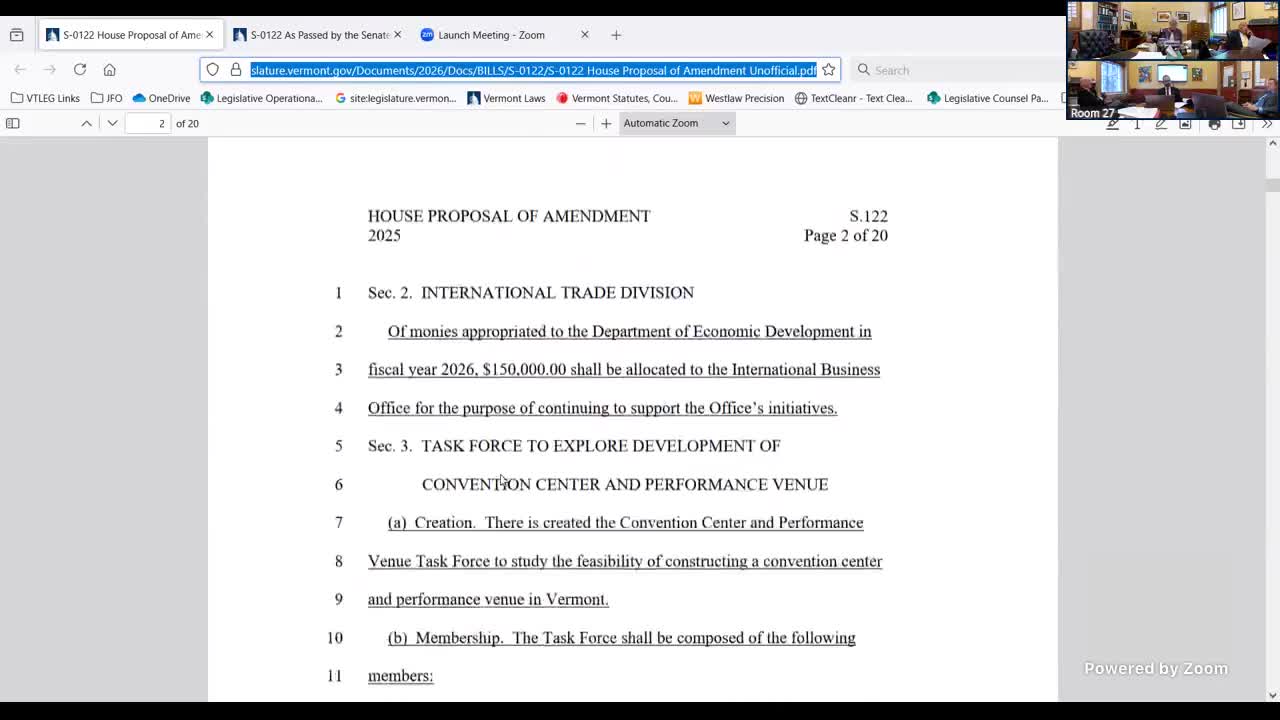 S.122 keeps convention‑center task force; membership adjusted and per‑diem rules clarified