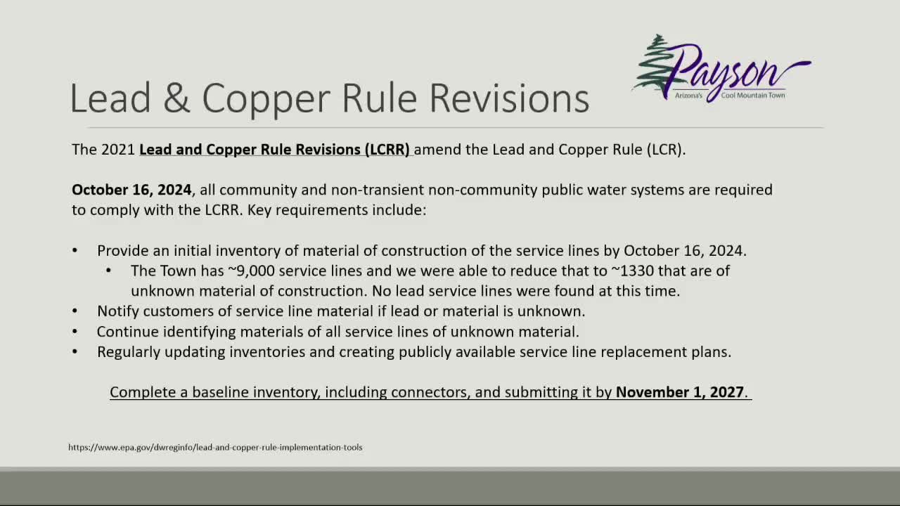 Payson authorizes application for WIFA assistance to comply with EPA Lead and Copper Rule revisions
