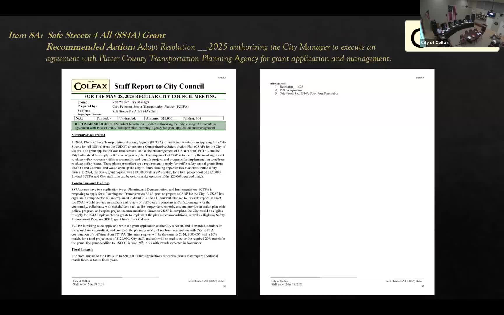 Colfax approves MOU to reapply for federal Safe Streets for All planning grant