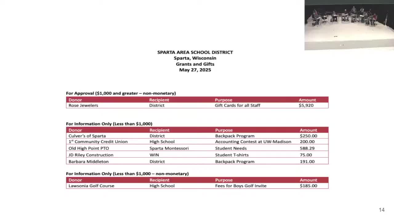 Rose Jewelers donates 592 $100 gift cards to Sparta Area School District staff; board accepts multiple donations