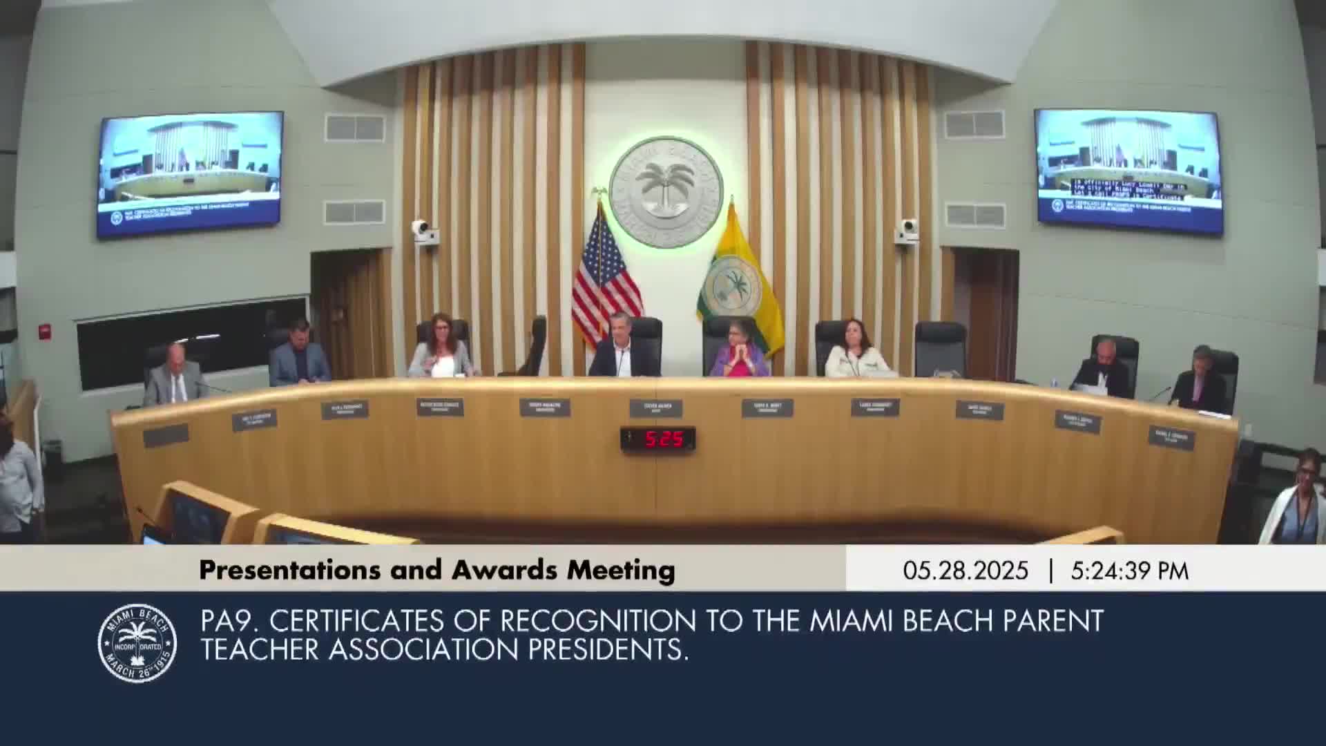 Miami Beach honors PTA presidents from city schools at May 28 ceremony