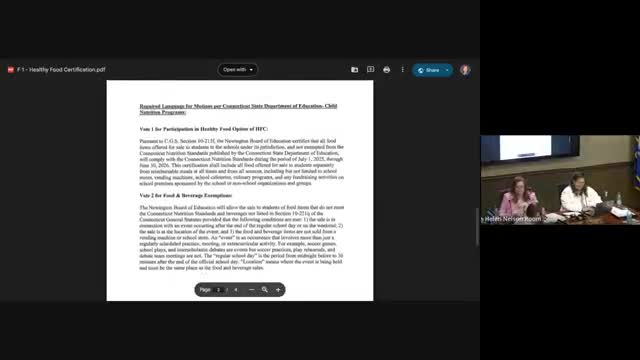 Board certifies compliance with Connecticut nutrition standards and approves limited exemptions