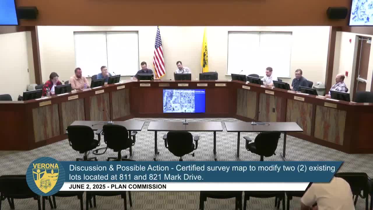Commission recommends council approve certified survey map to reconfigure lots at 811 and 821 Mark Drive