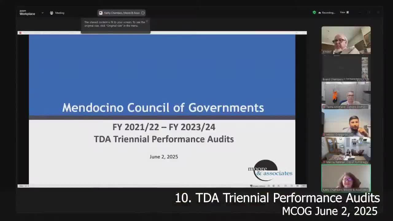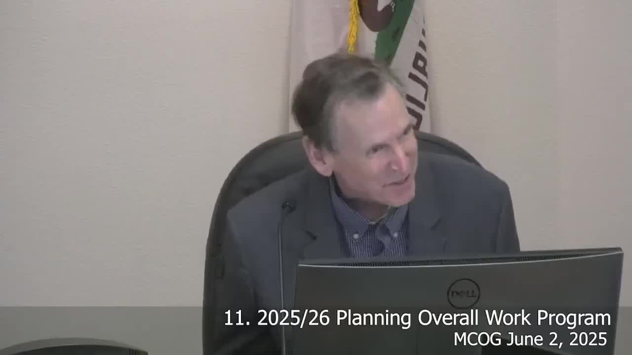 MCOG adopts FY 2025–26 RTPA/COG budget and final Overall Work Program; board sets senior‑center funding adjustment