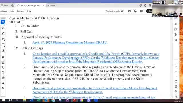 Planning commission continues Wild Horse development review amid road and MDA concerns