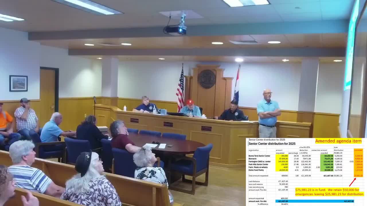 St. Francois County commissioners approve senior center distribution, authorize provisional budget amendment