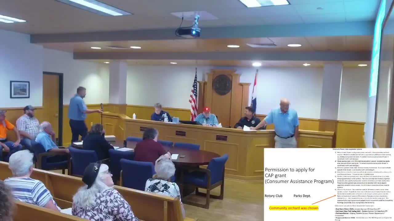Parks department to apply for community-assistance grant for community orchard; park trail bidding proceeds and county wins solar grant