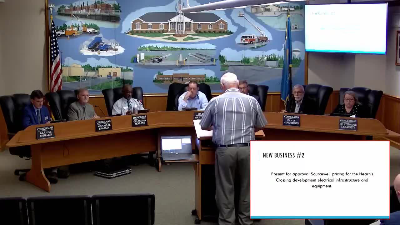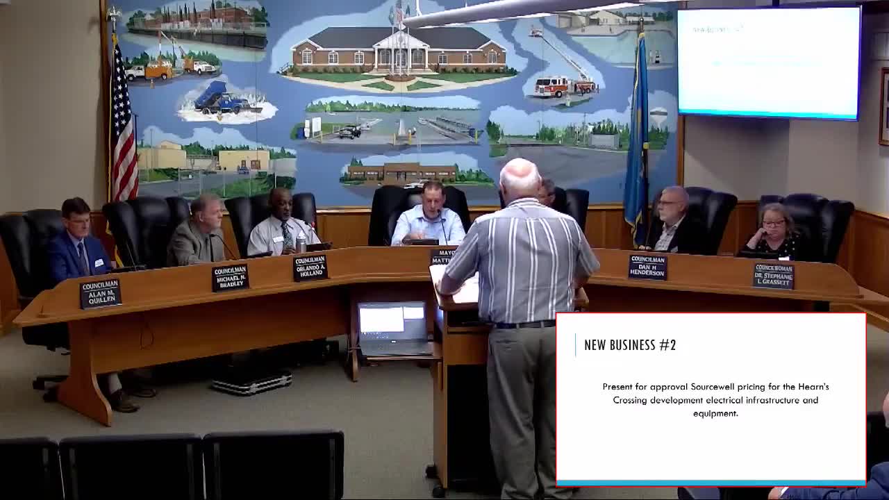 Council approves conditional order of developer electrical inventory for Hearns Crossing North pending escrow