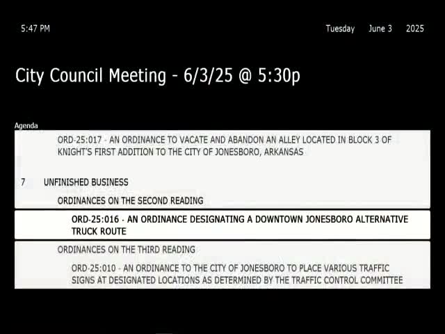 Votes at a glance: Jonesboro council advances truck-route ordinance and approves multiple traffic and permit measures
