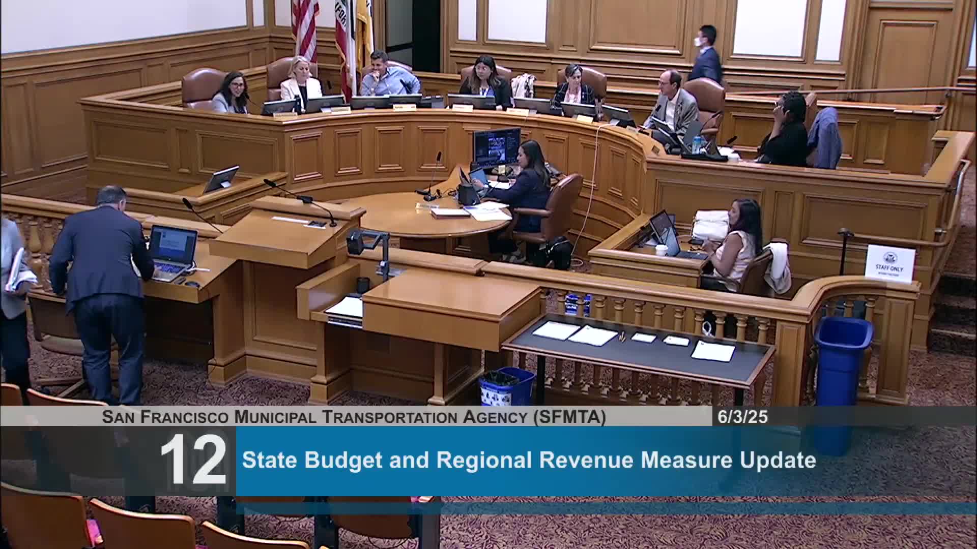 SFMTA staff warns state budget shifts and SB 63 timetable could put capital and fare‑subsidy funds at risk