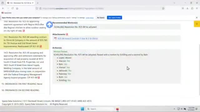 Council approves purchase, easement, sewer contract and FEMA buyouts; several routine items passed