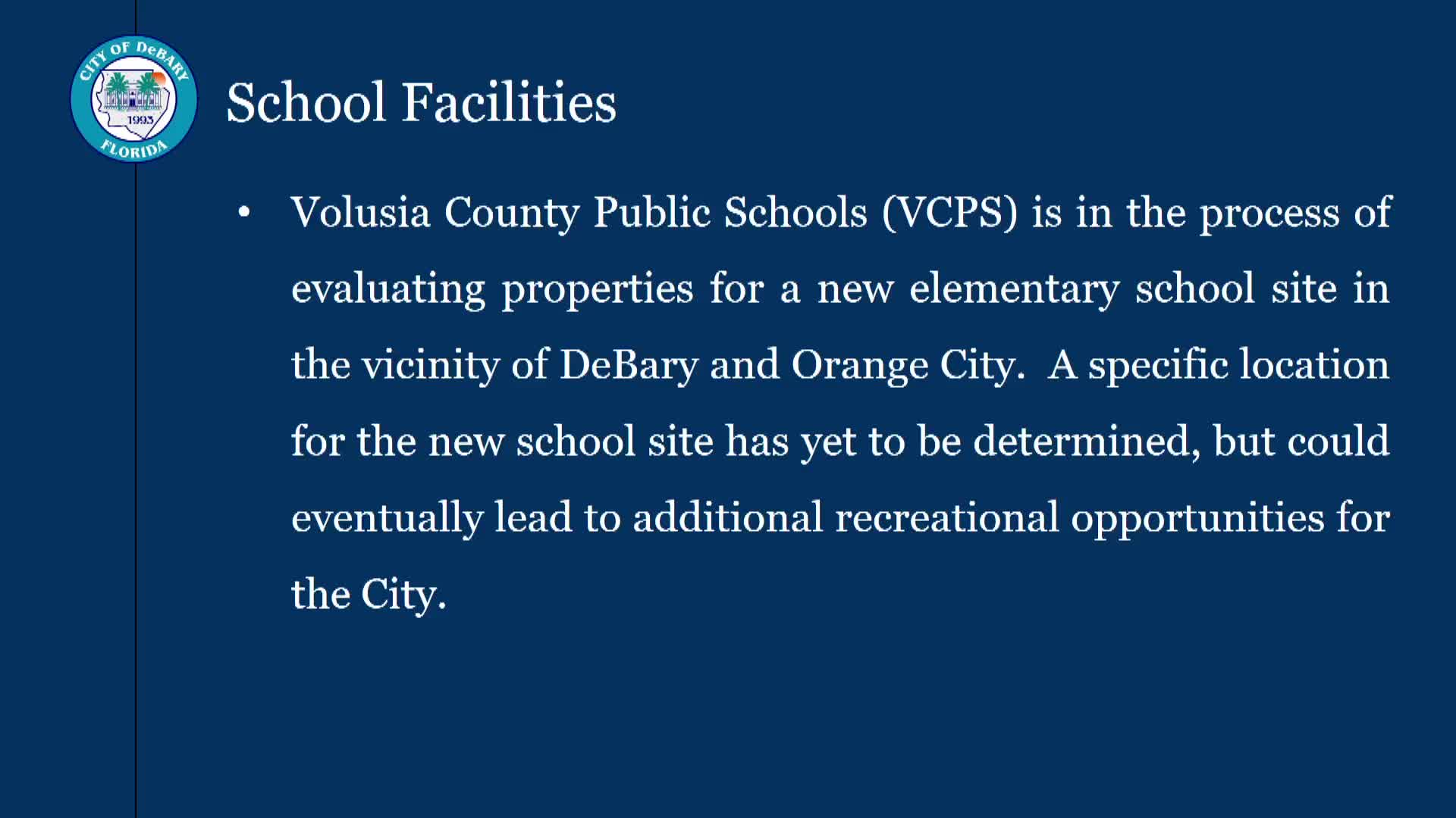 Resident urges DeBary council to press for new school; staff and council cite prior site approval