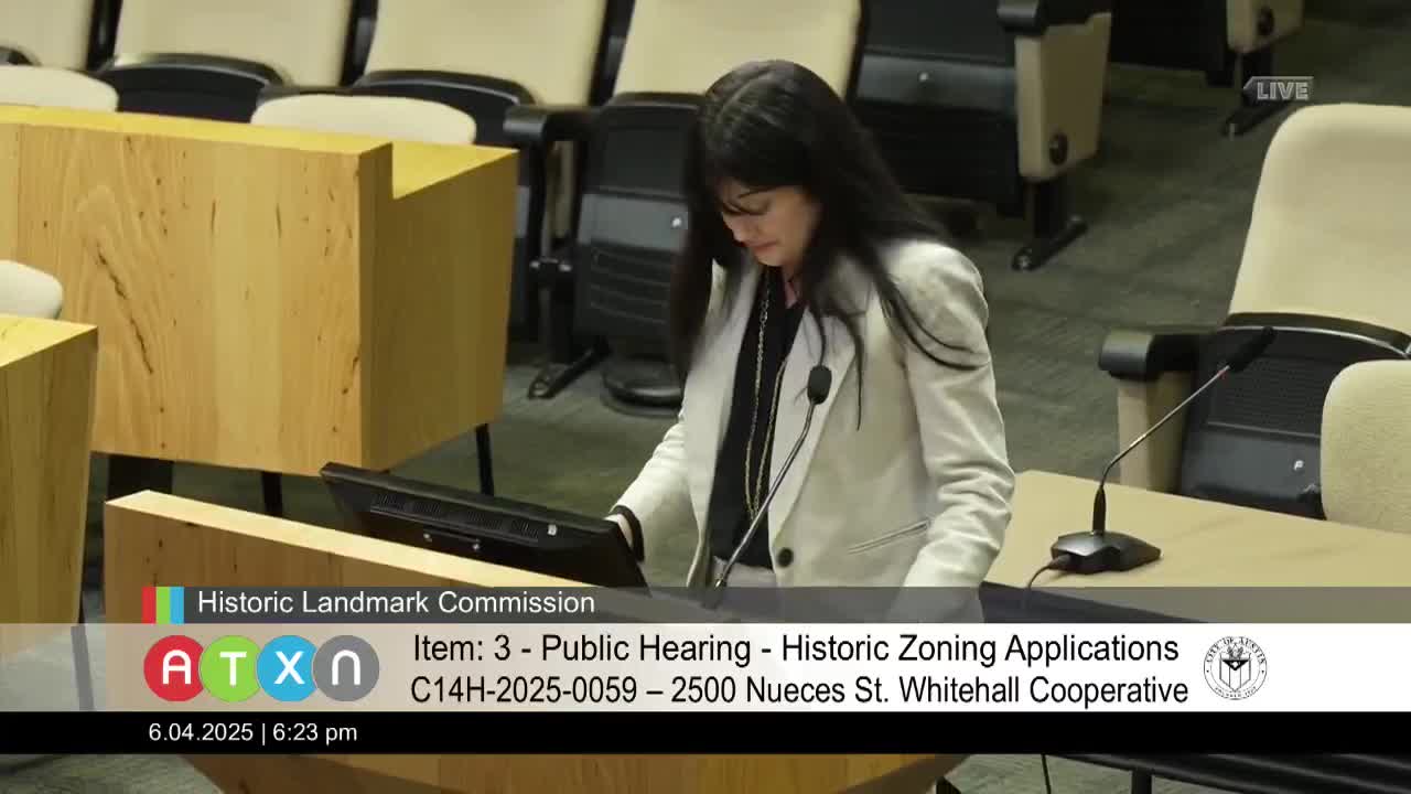 Historic Landmark Commission designates Whitehall Cooperative as historic at 2500 Oasis Street
