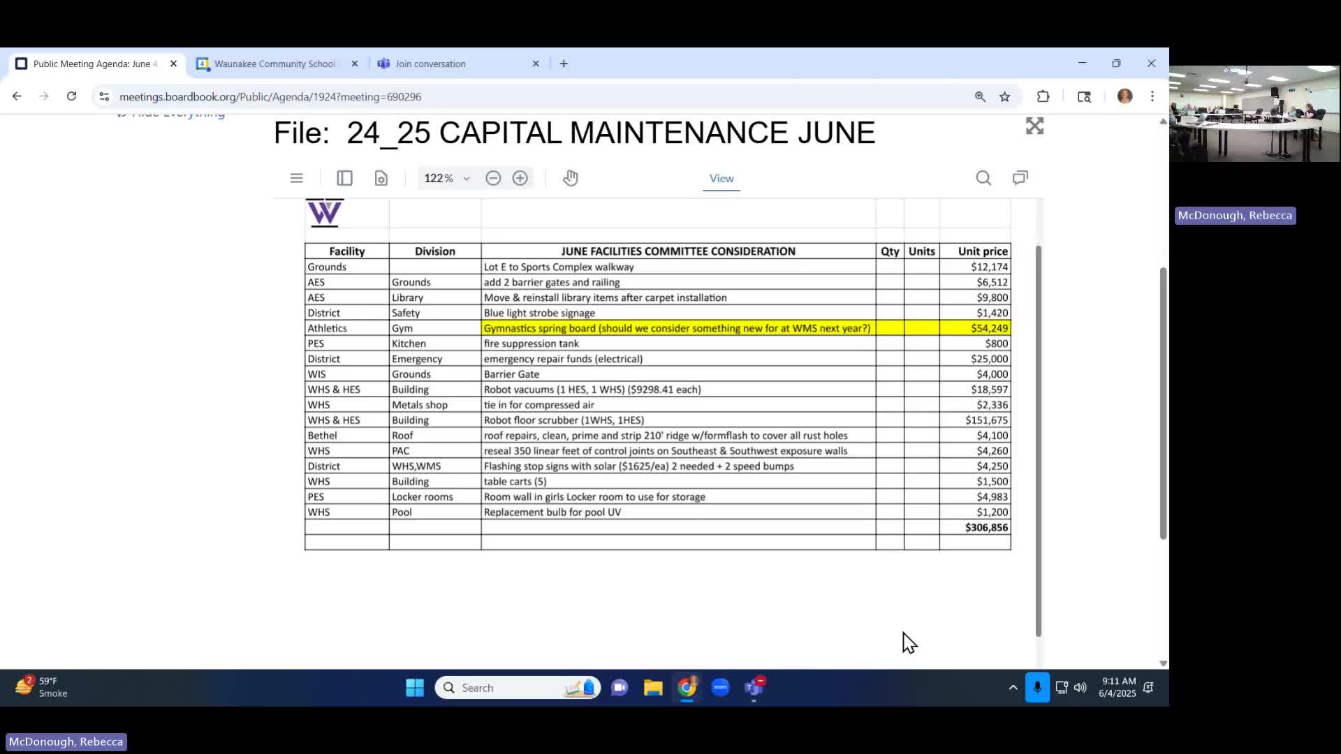 Facilities committee approves robotics pilot for custodial work, discusses emergency repair fund and gymnastics timing