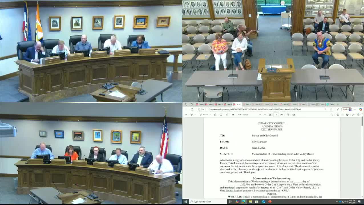 Council to consider memorandum with Cedar Valley Ranch as city weighs test wells and federal leases for new water sources