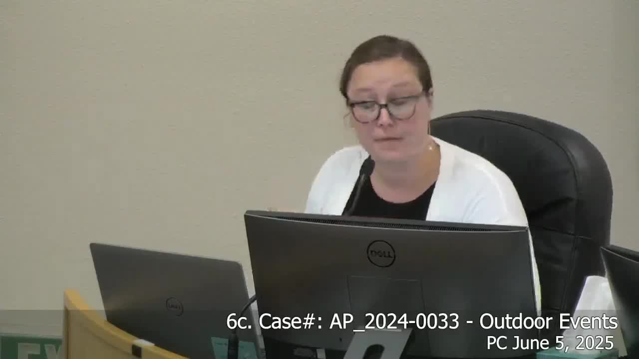 Commission continues administrative permit for outdoor events and weddings to July 17 at applicant's request