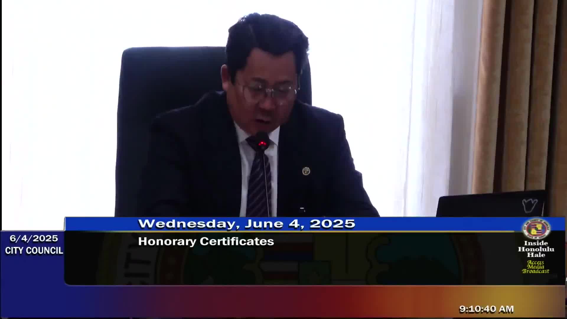 Council presents certificate to Ryker Perales, Hawaii’s 2025 National Civics Bee state champion