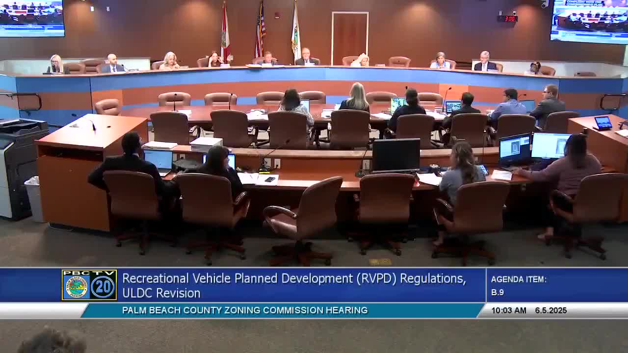 Zoning commission approves ULDC revision to clarify recreational vehicle planned‑development rules