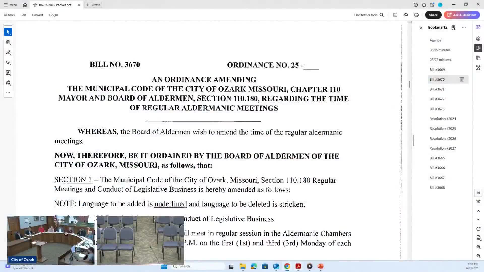 Ozark aldermen shorten meeting start time and adopt consent‑agenda rules to speed hearings